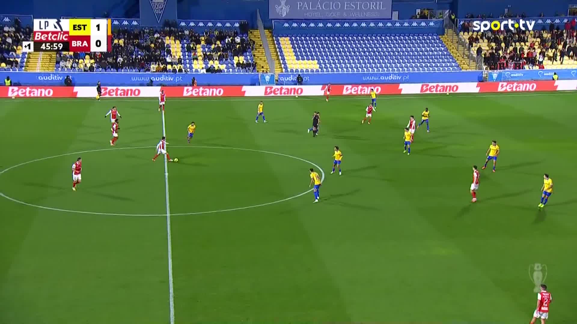 Começo da segunda parte Estoril 1, Braga 0.