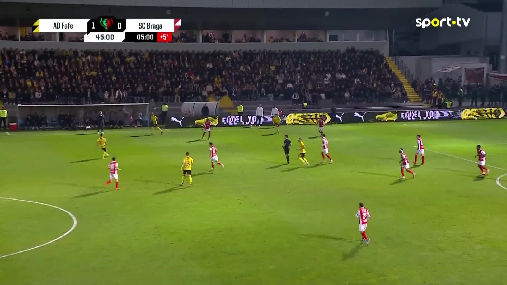 Termina a partida. O Fafe recebeu e venceu o Sp. Braga, por 2-1, nos quartos de final da Taça de Portugal, carimbando o passaporte para a fase seguinte da competição. João Santos (42') e Carlos Daniel (70') marcaram para a equipa da casa, Dorgeles (94') reduziu para o conjunto bracarense.