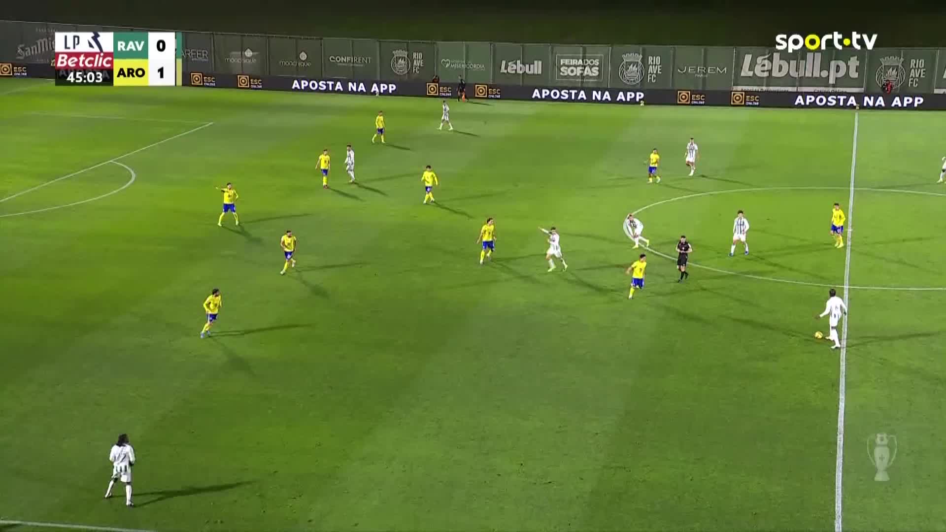 Começo da segunda parte Rio Ave 0, Arouca 1.