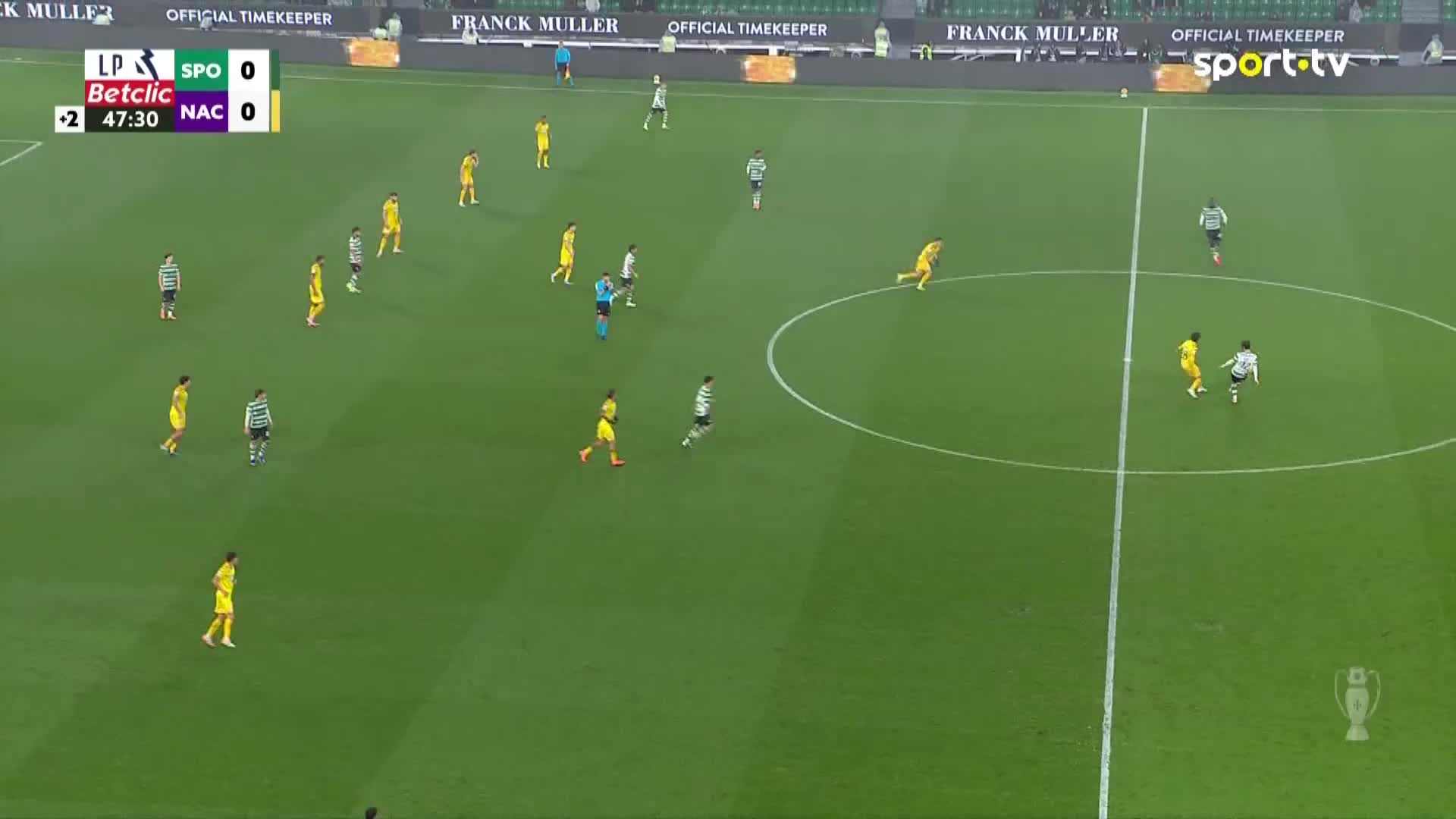 Começo da segunda parte Sporting 0, Nacional 0.