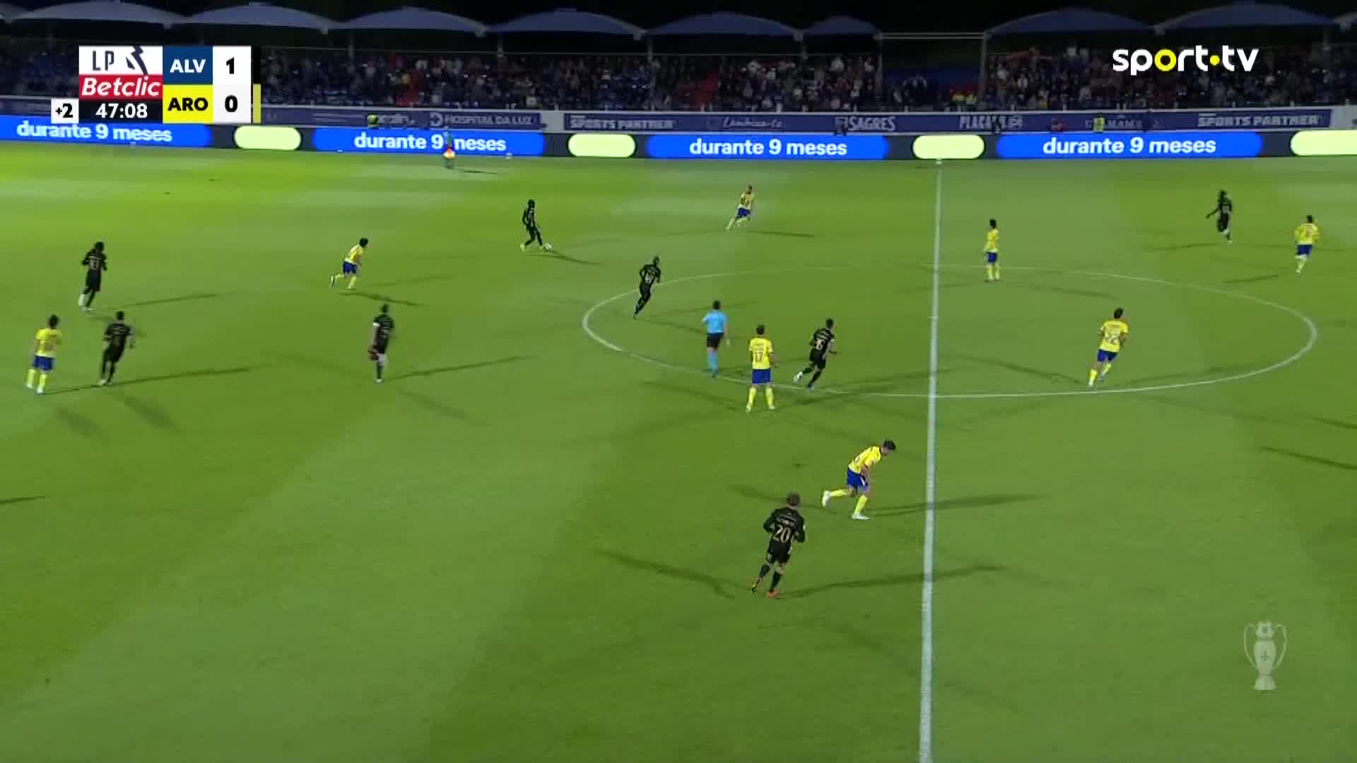 Começo da segunda parte Alverca 1, Arouca 0.